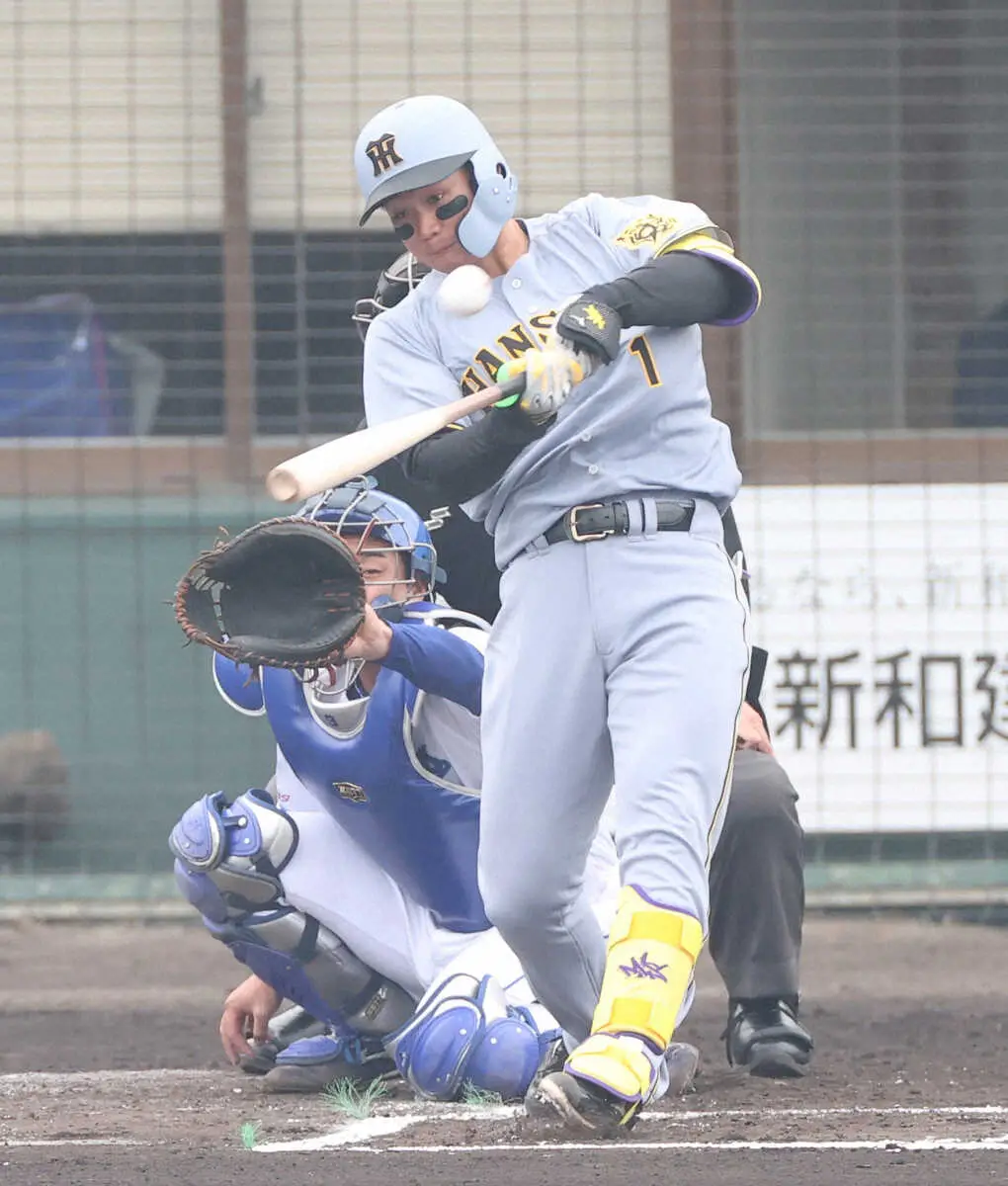 周囲の不安をよそに、森下はグッとアクセルを踏み込んだ。12日に訴えた腰の張りの影響で、9日の合同紅白戦以来2週間ぶりの実戦。霧雨が舞う悪天候の中でベテラン・涌井と相対した。復帰戦にしてはややハードなシチュエーションでも、若き4番に怖さはない。初回1死から中野、佐藤輝に連打が生まれて一、三塁の先制機。カウント1―1からの内角高め直球を豪快に砕いてみせた。