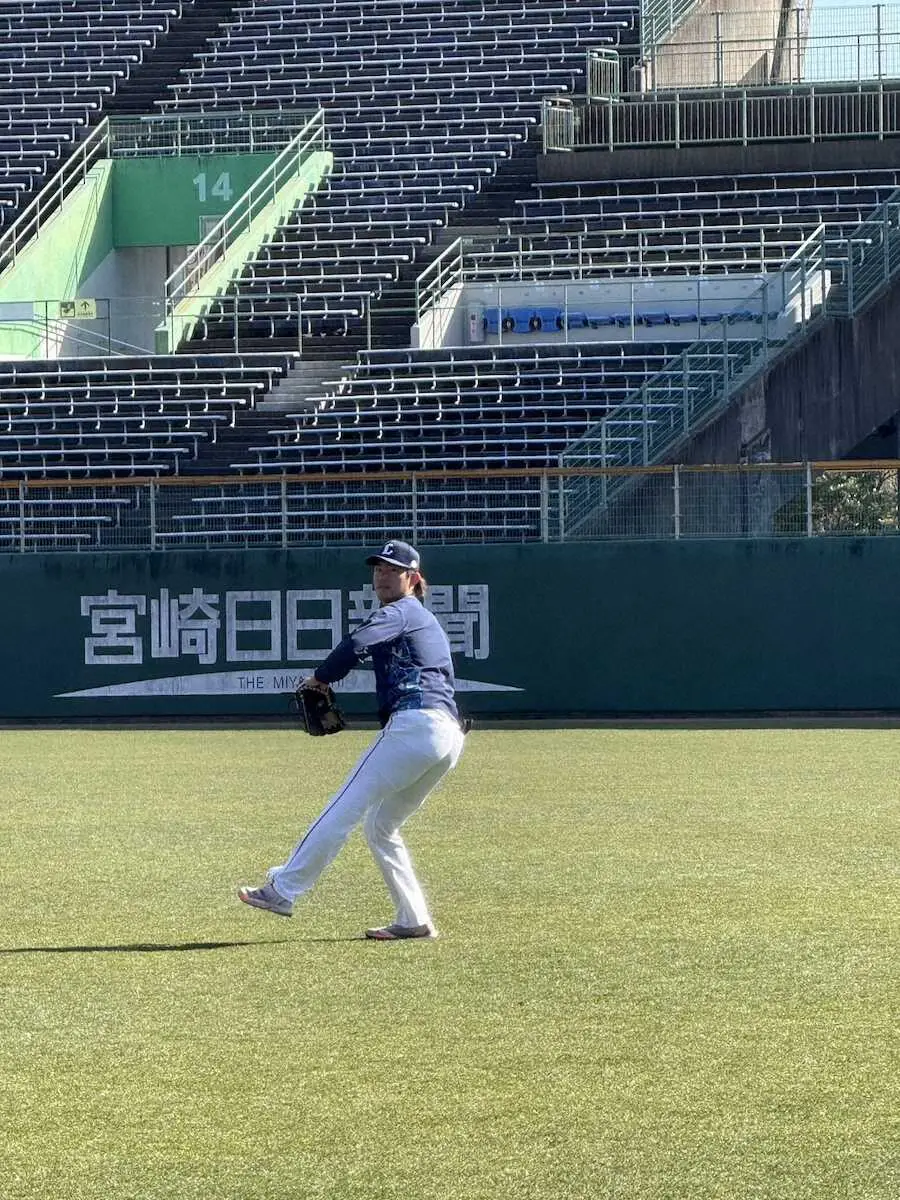 26日の韓国・斗山との練習試合(サンマリン宮崎)に先発する西武の今井が新球のツーシームを試す。