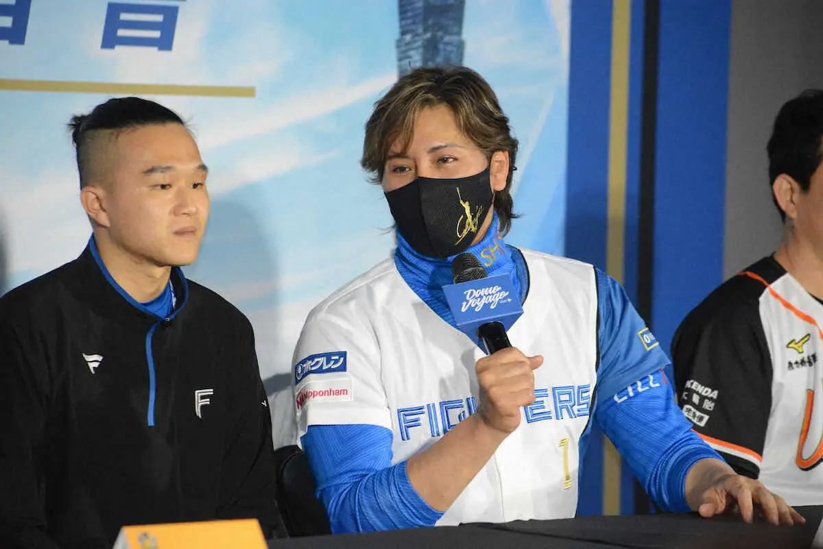 会場となる台北ドームでの全体練習後に、対戦相手で阪神やオリックスで活躍した中信・平野恵一監督らと並んだ新庄監督は「昨年の巨人の台湾での交流試合を見て、腹が立った。台湾と一番仲が良いのはファイターズじゃないかと。そのすぐ翌日にフロントに台湾のこの球場でやりたいと伝えて実現したので、試合をできてうれしい」と笑顔を見せた。