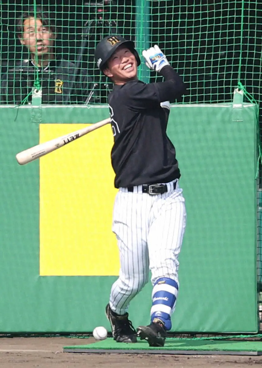 「良かったです。バッティングはこのキャンプでだいぶ成長したと思うので、試合で打てるように。試合で打たないと意味がないのでやっていきたい。鳴尾浜に比べると左中間方向は全然届かない。広いので。風も利用して試合でも打てたらいい」と笑顔。23日の中日とのオープン戦(北谷)も出場しており「いい経験をこれからも生かしたい」とレベルアップを誓った。