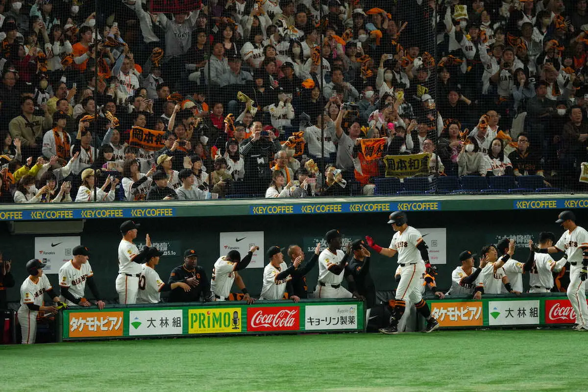 <巨・ヤ>3回、2ランを放った岡本を迎える巨人ベンチ(撮影・島崎忠彦) Photo by スポニチ 巨人・岡本和真が“今季1号”2ラン!初実戦第2打席で完璧2ラン ヘルナンデ… ギャラリーで見る この記事のフォト 2025年03月01日の画像一覧 もっと見る 2025年03月01日の画像をもっと見る