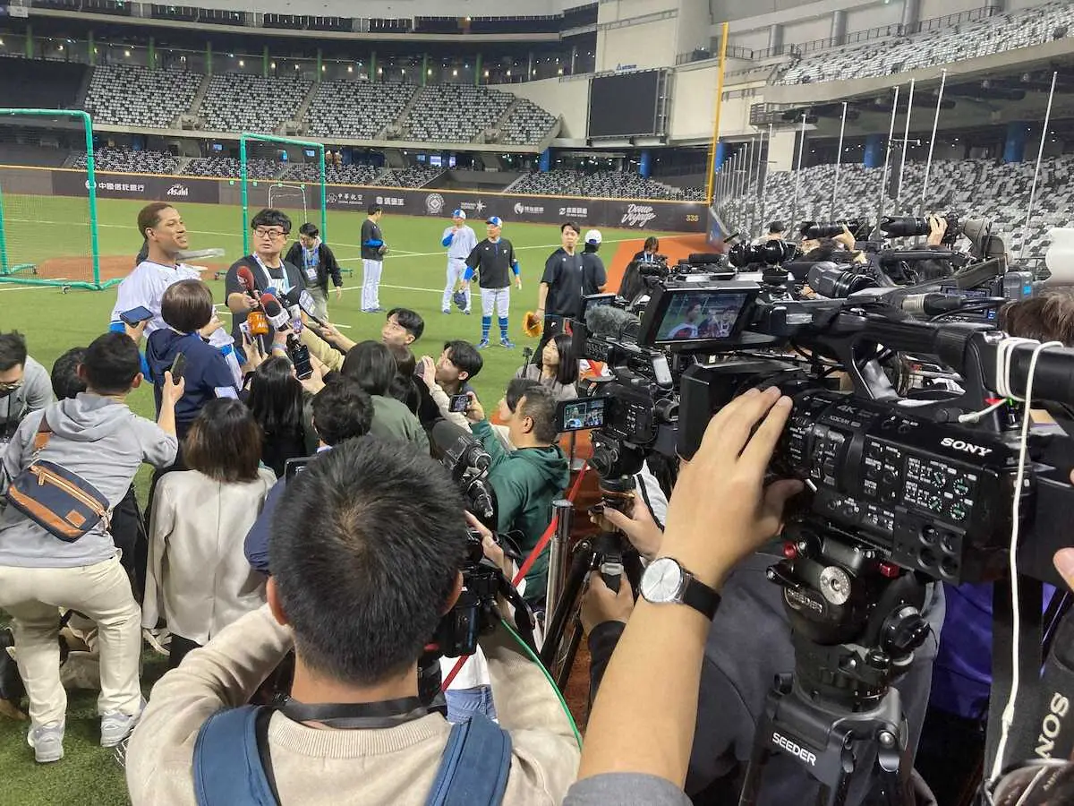 その人気ぶりを示すかのように、台湾メディアは万波に熱視線を送った。テレビカメラは13台に上り、報道陣は台湾メディアだけで30人以上が集まった。会場となる台北ドームでは右翼での守備練習のほか、フリー打撃も実施し「(台北ドームは)近未来というか、音響とかベンチ裏も含めて最先端な感じがします」と一昨年に開場したばかりの球場に胸を躍らせた。