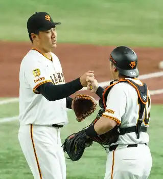 オープン戦<巨・ヤ>初回を投げ終え甲斐(右)とグータッチする田中将(撮影・島崎忠彦)