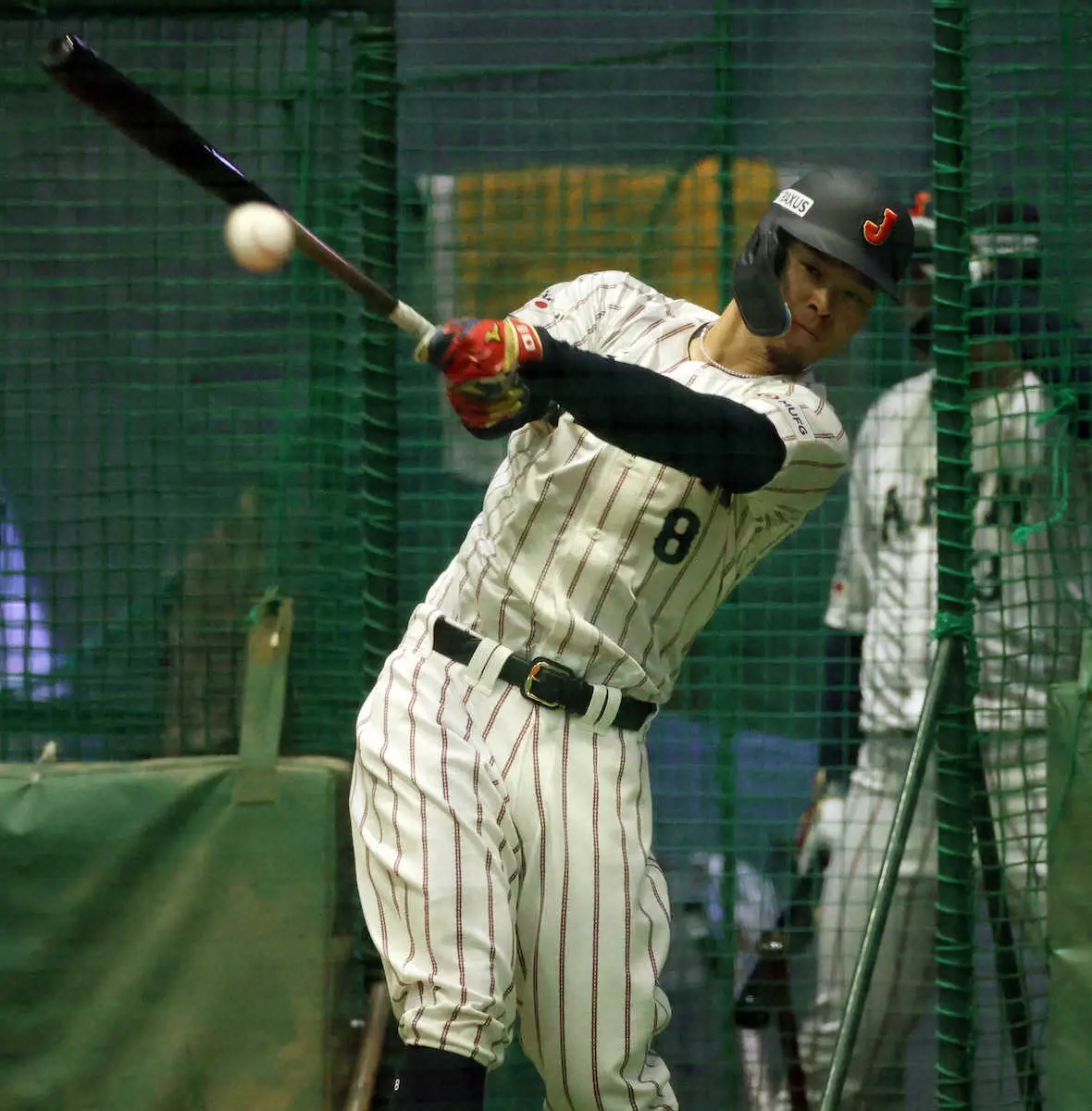 準備に余念はない。全体練習では、投内連係やノックの一挙手一投足に日の丸を背負う責任をにじませ、軽快に動いた。フリー打撃では広角に快音を響かせ、随所に豪快弾を予感させた。合間には、万波とミートポイントについて会話を交わし、長岡、矢野、森らセ界の若武者とも交流。充実の3時間だった。