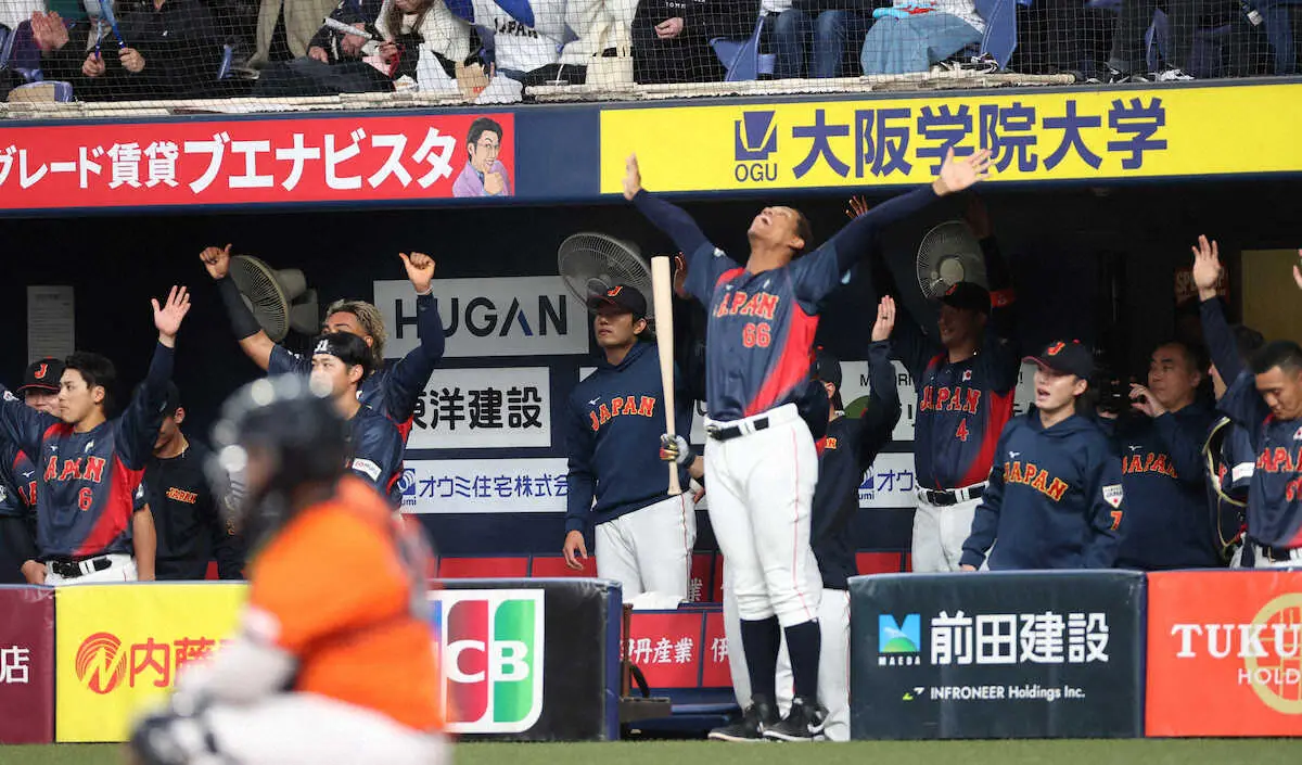 侍ジャパンシリーズ<オランダ・日本>5回、左越え本塁打を放った大山(右)を迎えるナイン(撮影・平嶋 理子) Photo by スポニチ 【侍ジャパン】オランダを圧倒し連勝 スピードとパワー融合で9得点!投手… ギャラリーで見る この記事のフォト 2025年03月06日の画像一覧 もっと見る 2025年03月06日の画像をもっと見る