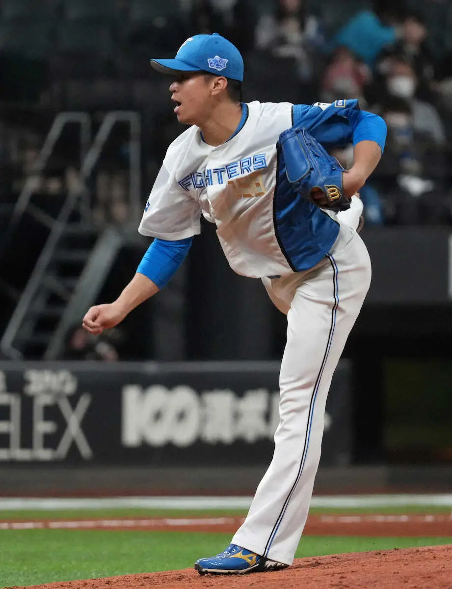 1点リードの9回に登板した。先頭の外崎の4球目に、自己最速を1キロ更新する154キロの直球でファウルを取ると、最後も「これまで出たことがない」という速さの146キロのフォークで空振り三振。後続も打ち取り、1回パーフェクト投球を見せた。新庄監督も「良くないですか。ボールの勢いもあるし、変化球の曲がる場所が去年と全然違う。打者が振りにいく手前で変化しているので、凄くいい」と褒め称えた。