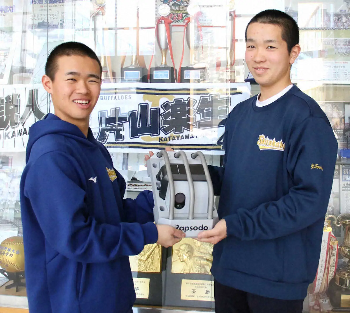 白樺学園にOBのオリックス・ドラ6片山からラプソードなど寄贈 上主将「結果で恩返ししたい」