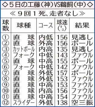 阪神の育成ドラフト1位・工藤(四国・徳島)の底知れぬ「真っすぐ」が聖地デビューでも火を噴いた。前日の中日戦の9回に甲子園初登板を果たし1回無失点。直球の最速は157キロを記録した。19球中15球が直球で走者を背負ってのクイック投法も含めてすべて150キロ以上を計測。1死で対峙(たいじ)した鵜飼には、フルカウントの7球目から5球連続で直球勝負を挑んだ。最後は138キロのスライダーで空振り三振に仕留め「変化球のサインが出てそれで決めろっていうことで」と振り返った。