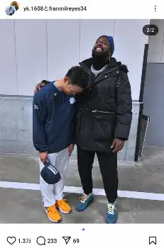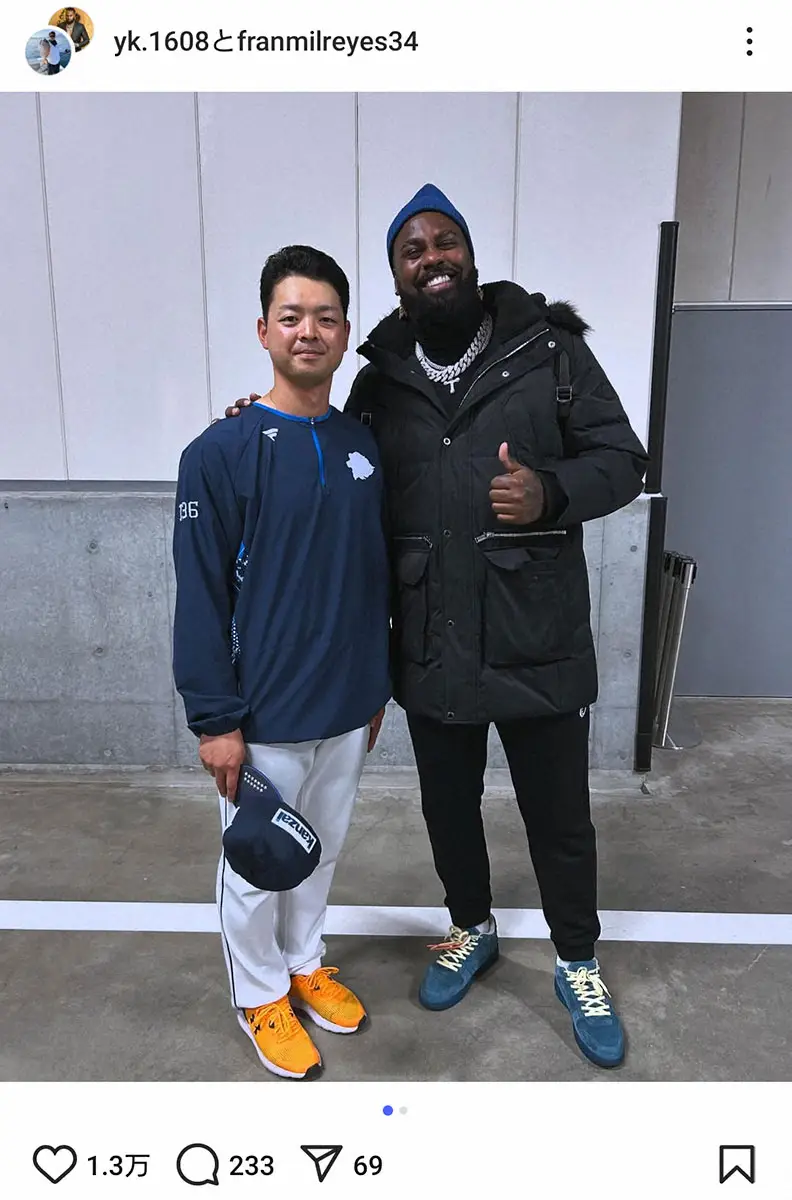 日本ハムのフランミル・レイエス外野手(29)が7日、自身のインスタグラムを更新。5日のオープン戦で自身に死球を与えた西武・黒木優太投手(30)との2ショットを公開した。