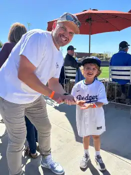 ドジャースの大谷翔平投手(30)が8日(日本時間9日)、ホワイトソックスとのオープン戦に「1番・DH」で先発出場。この試合に日本ハムで同僚だったブランドン・レアード氏(37)が息子のセバスチャン・カイくんら家族とともに観戦に訪れた。
