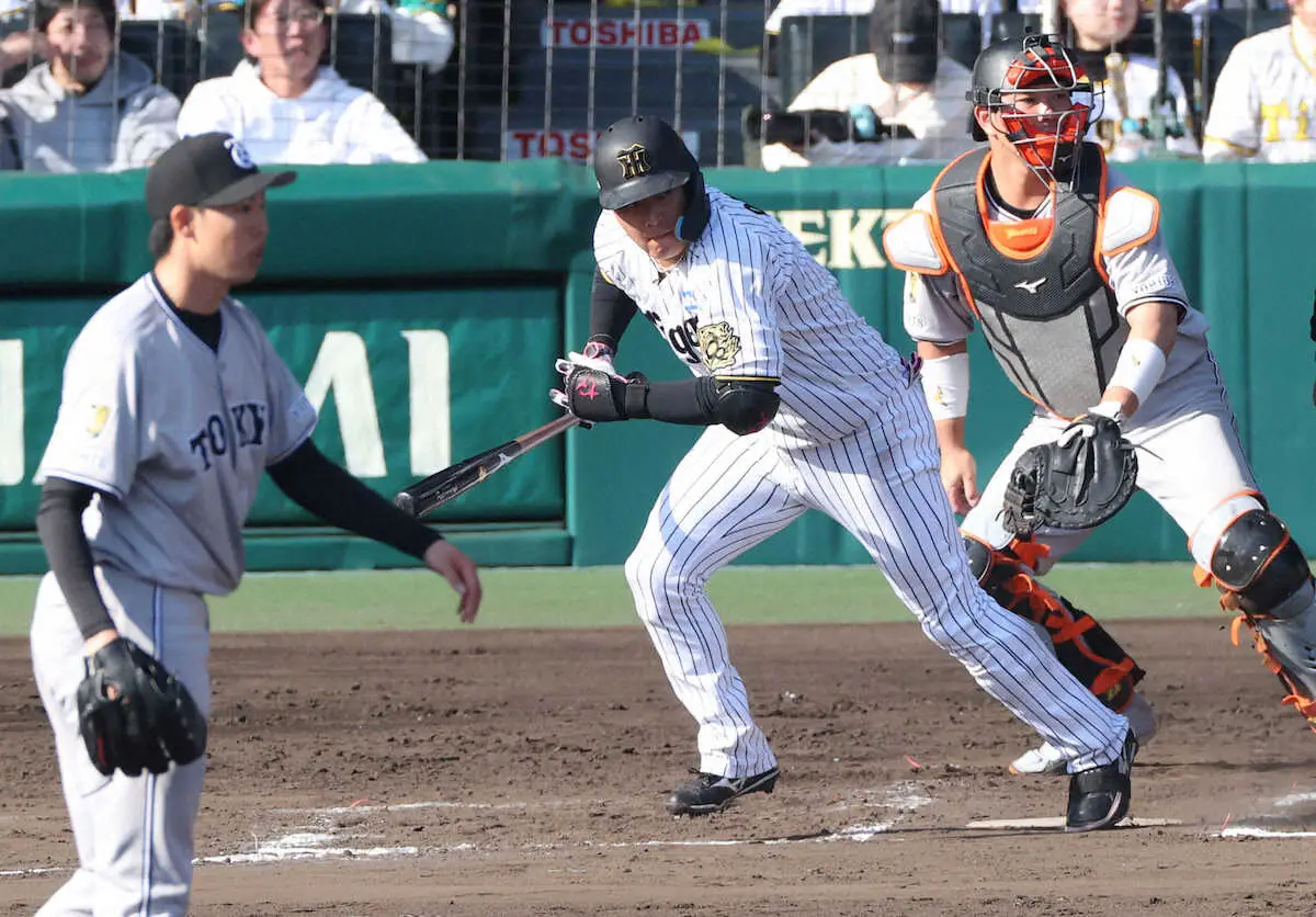 1―8の7回、先頭・大山が三塁線を鋭く襲う内野安打で出塁し、前川の右前打が右翼手・岡田の失策を誘い、無死二、三塁。続くヘルナンデスが遊ゴロを打ち、しぶとく1点を返した。反撃への力を宿してくれた名物応援に、大山は「凄かった」と回想した一方で、高卒4年目で初体験の前川は守備面の注意点も忘れない。
