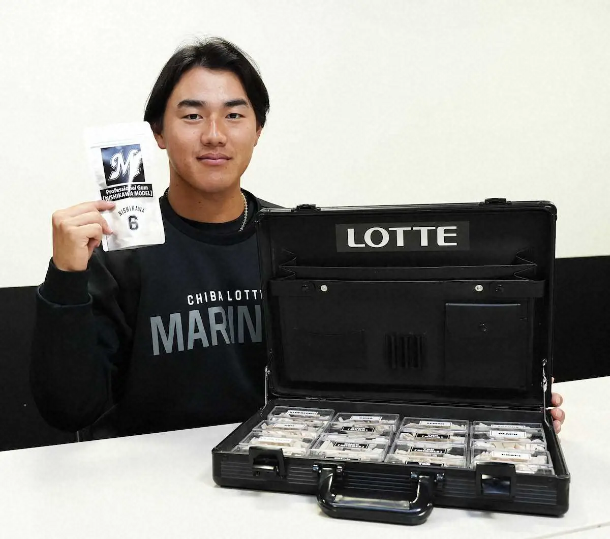 ロッテのドラフト1位ルーキー・西川史礁外野手(21=青学大)が、専用のオリジナル「プロフェッショナルガム」の選定を行った。日本ハムとのオープン戦(ZOZOマリン)の試合前、球場内で自分の好みに合った形状、硬さ、香味を選んで「凄く美味しかったので、出来上がりが楽しみだと思います」と笑った。