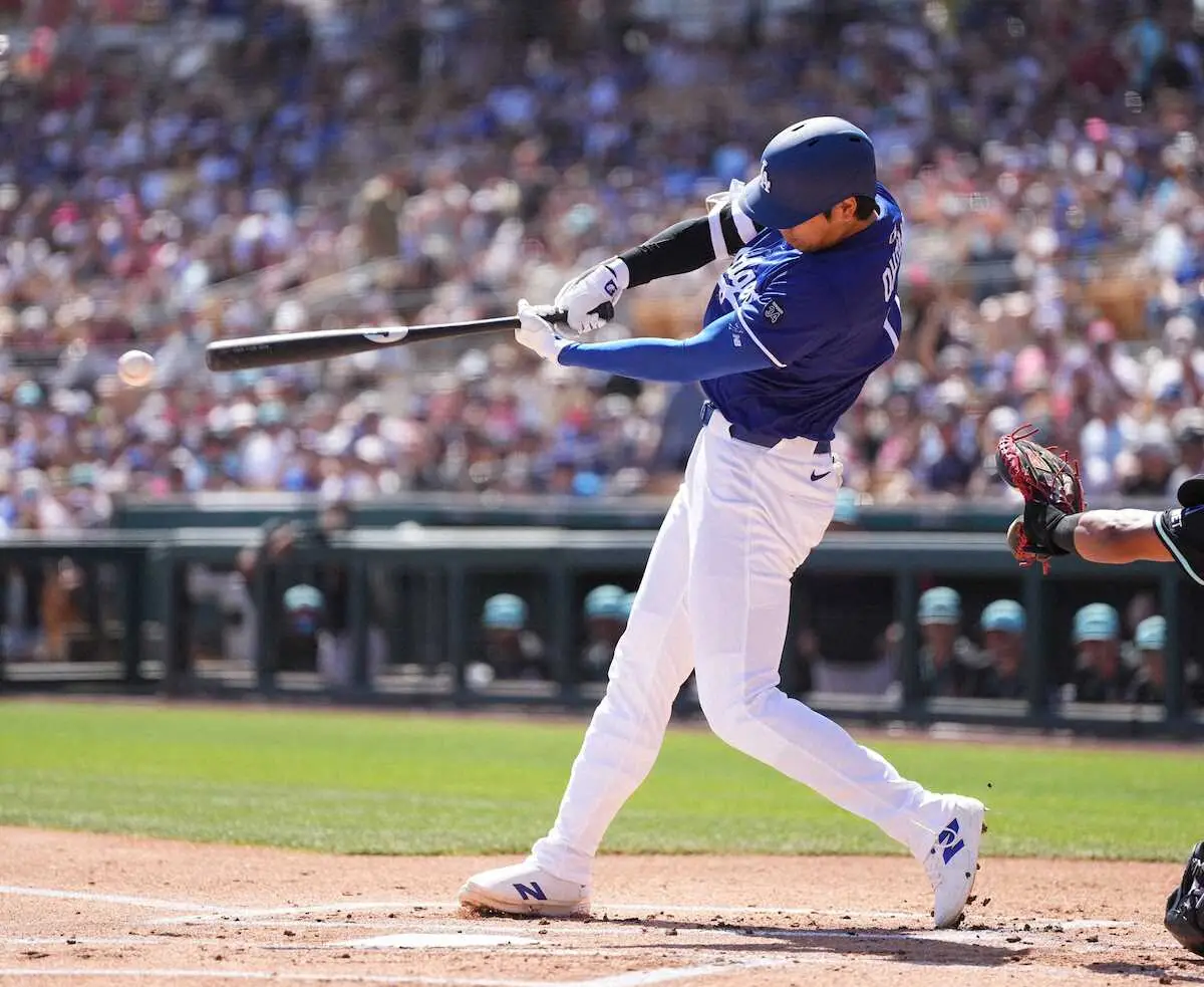 ドジャース・大谷 痛烈二塁打!今春メジャー最速190.7キロ 6戦中5戦で安打!好調打率.353