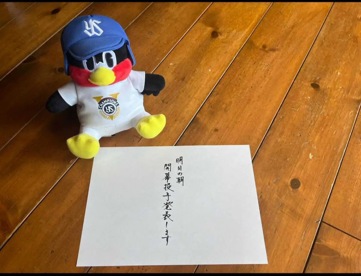 13日夜に球団SNSが更新され、つば九郎のぬいぐるみとともに指揮官の直筆による「明日の朝、開幕投手発表します」との「予告」文書をアップした。