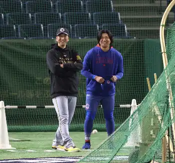 阪神・藤川監督 カブス今永と“先輩後輩対談” 東京ドームでの公式練習で