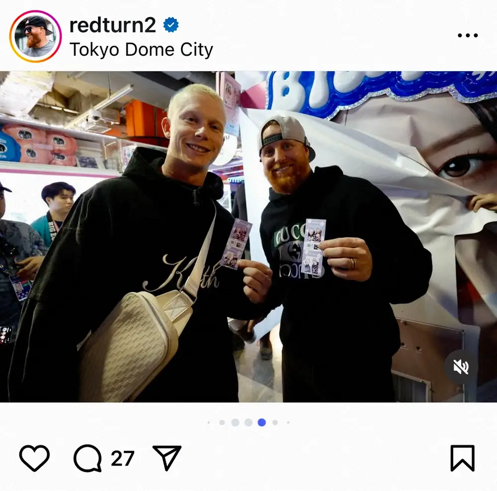 ターナーはチームメートのピート・クルーアームストロングとゲームセンターを訪れ、プリクラやエアホッケー、UFOキャッチャーなどを楽しむ写真を複数枚投稿。プリクラではハートポーズをつくるなどノリノリで、笑顔が弾けていた。