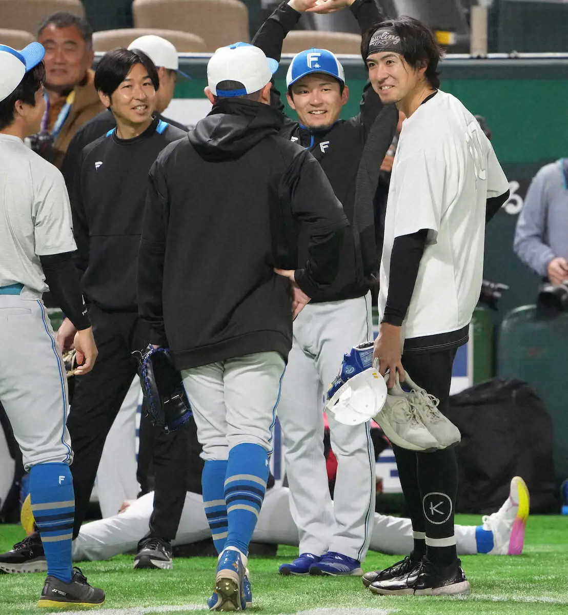 練習前には日本ハムナインと笑顔で交流。「久しぶりな人もいるんで」とし、古巣との対戦に「ちょっと不思議な感じかなと思うんですけど」と語った。