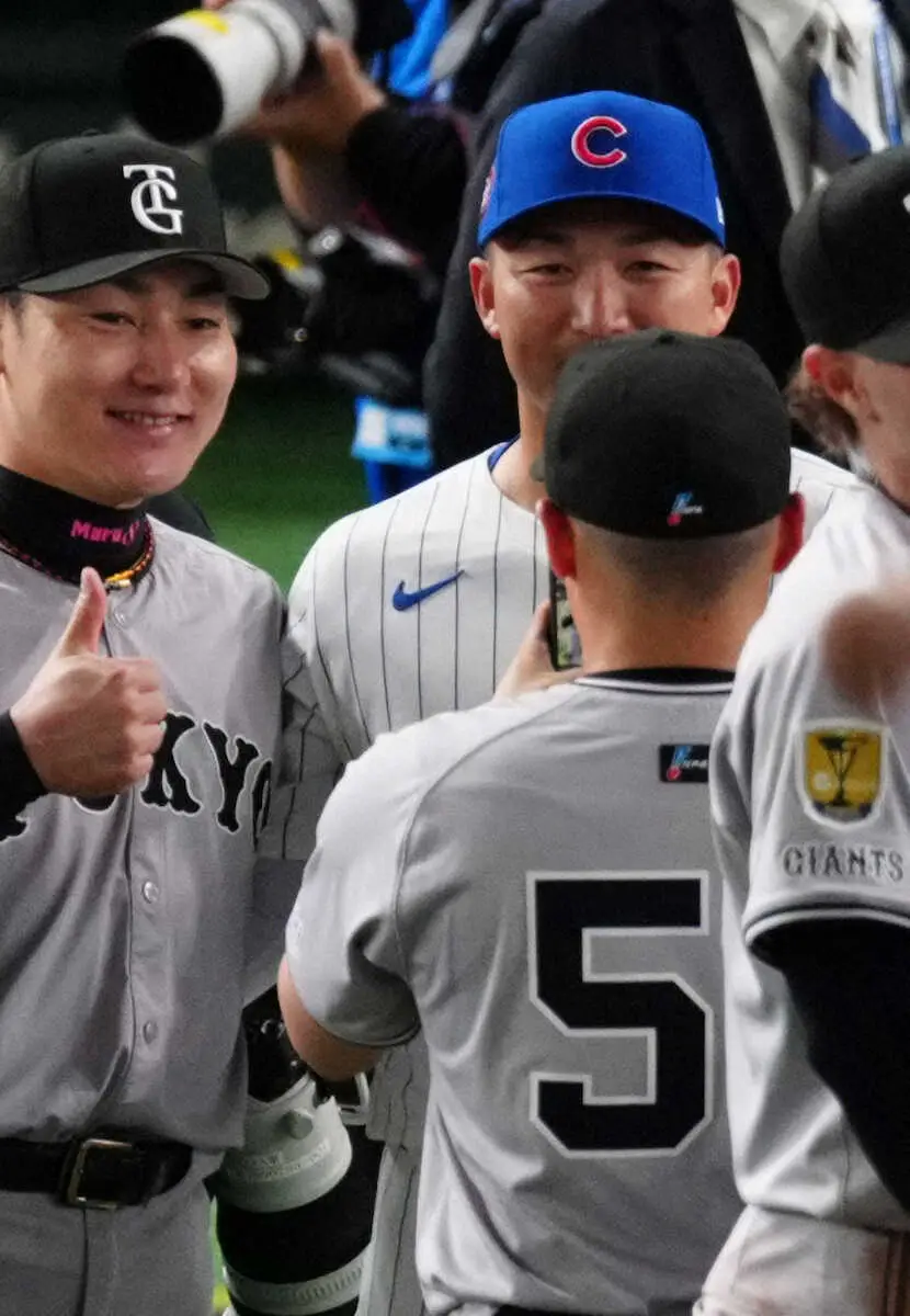 試合後、鈴木が取材対応。試合前後に広島時代に同僚だった巨人・丸と記念撮影するなどして交流したことについて「結構話すことができた。久しぶりに会うのもありますし、今日楽しみに球場に来た」と笑顔で振り返った。丸が会いたがっていたと告げられると「僕のことを凄く好きだと思うので、会えて良かった」と笑った。
