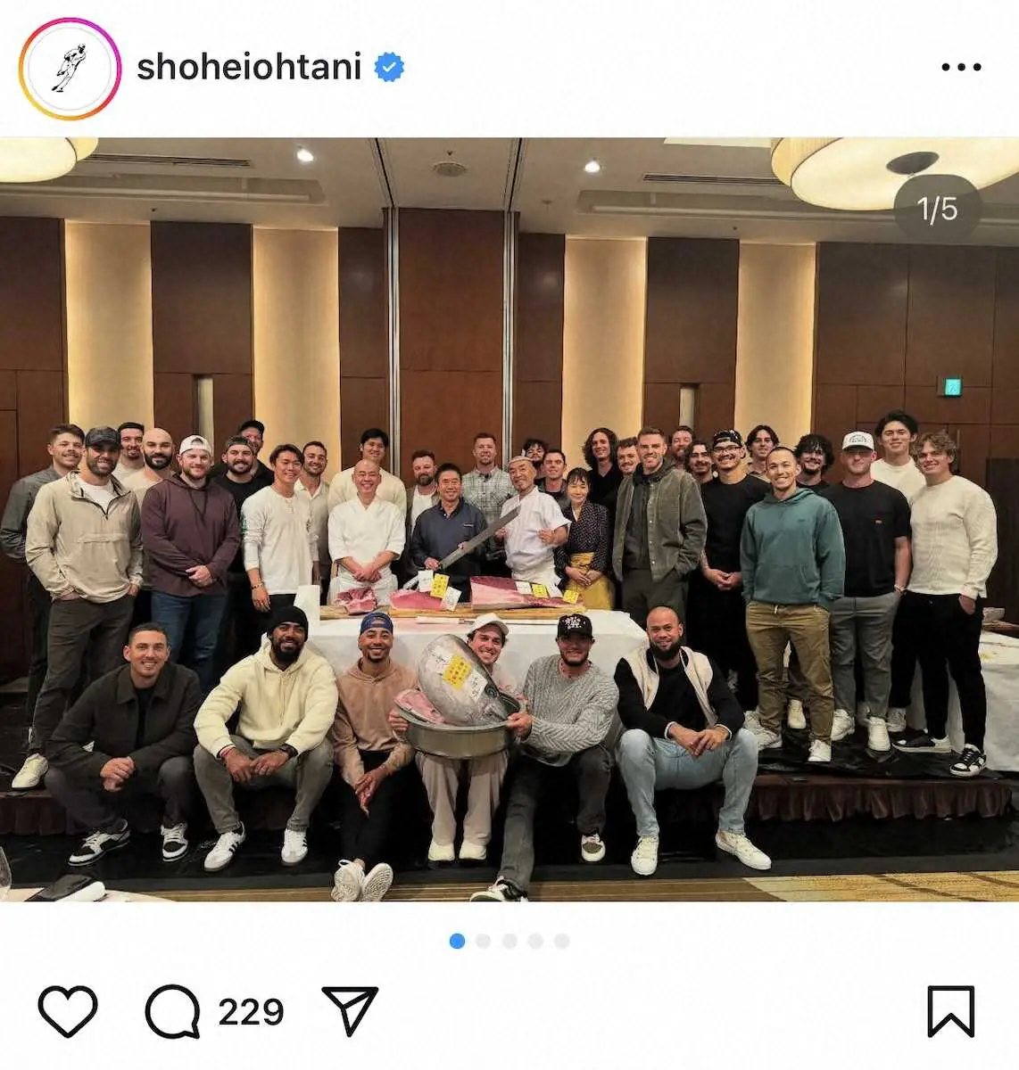 ドジャース 試合後に“和食パーティー” 大谷らマグロ177キロ大盤振る舞い!