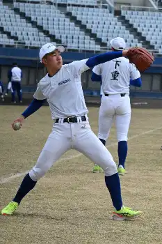 健大高崎・石垣 左脇腹に不安もキャッチボールで順調な回復ぶり見せる