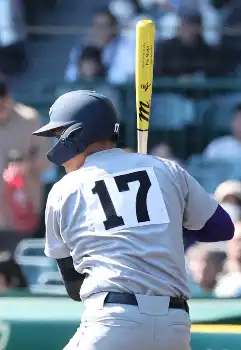 背番号17はドジャースの大谷翔平、エンゼルスの菊池雄星、スタンフォード大の佐々木麟太郎と、米国で活躍する先輩たちがつけた背番号。「大谷翔平さん、菊池雄星さん、佐々木麟太郎さんがつけた背番号を背負って甲子園でプレーできたことに感謝しています」と話した。