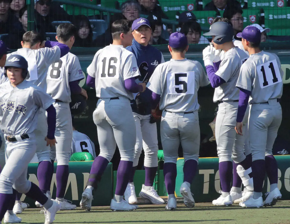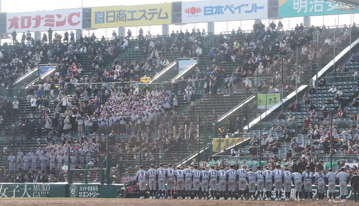<花巻東・米子松蔭> 試合に勝利し、アルプスへあいさつに向かう花巻東ナイン (撮影・後藤 大輝) Photo by スポニチ 【センバツ】花巻東は甲子園初の2桁得点で大勝 佐々木監督「頼もしい」次… ギャラリーで見る この記事のフォト 2025年03月18日の画像一覧 もっと見る 2025年03月18日の画像をもっと見る