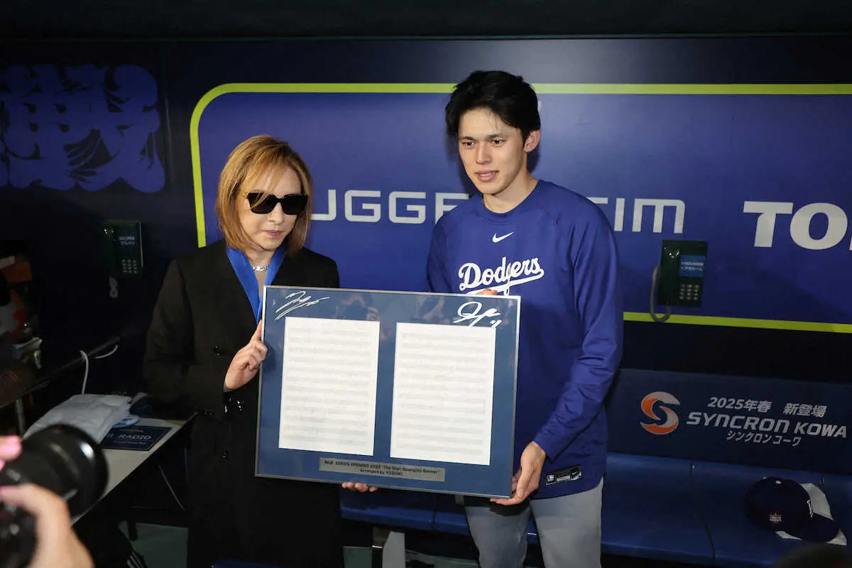 <カブス・ドジャース>YOSHIKI(左)は佐々木と記念撮影(撮影・篠原岳夫) Photo by スポニチ YOSHIKIのピアノ両国国歌演奏に東京D拍手の嵐!美しい音色に歓声鳴りやま… ギャラリーで見る この記事のフォト 2025年03月18日の画像一覧 もっと見る 2025年03月18日の画像をもっと見る