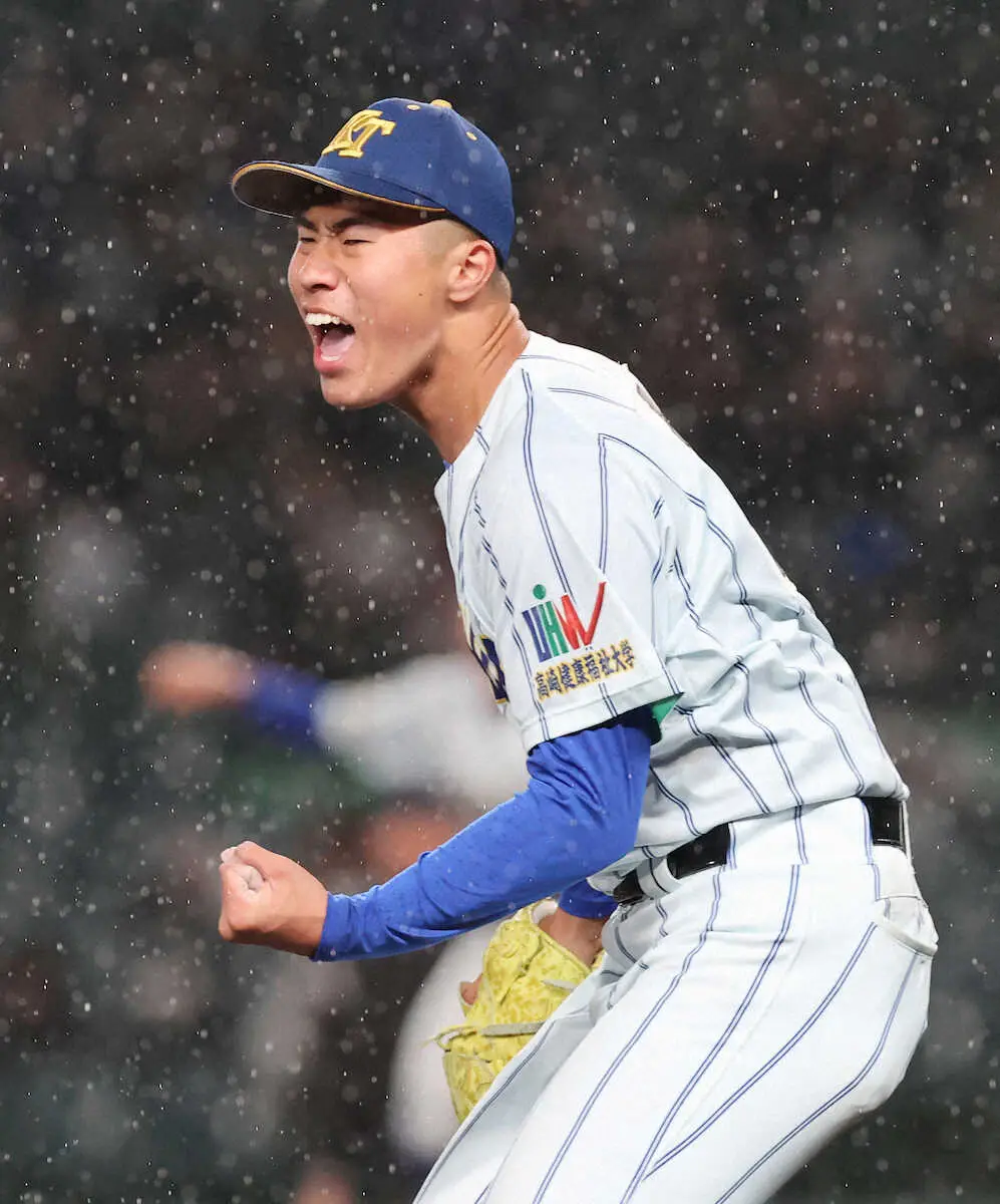 6回以降はこう着状態。お互い譲らず1-1のまま9回に突入。2死一塁からは代打で、昨春選抜優勝に導いた左腕・佐藤龍月(りゅうが=3年)が登場した。佐藤は昨年選抜で5試合、計22回を無失点に抑えて優勝に貢献も、昨夏に左肘内側側副じん帯再建術(通称トミー・ジョン手術)を受けた。今大会は“代打枠”の背番号18でベンチ入りを果たした。