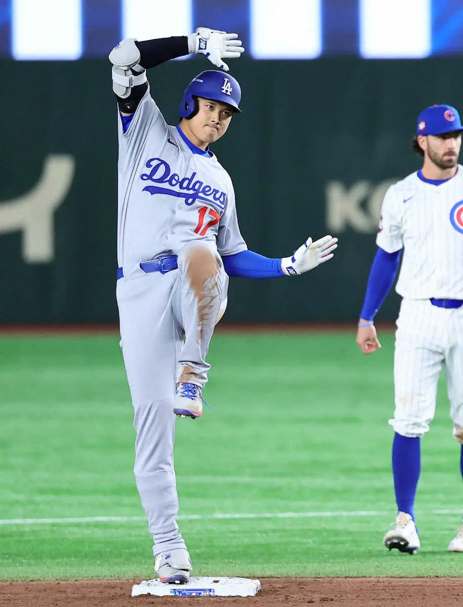 ドジャースの大谷翔平投手(30)が18日、カブスとの開幕戦に「1番・DH」で先発出場。第3打席で右前打を放って今季初安打を放つと、第5打席でも二塁打で開幕戦からマルチ安打をマークしチームの白星発進に貢献した。