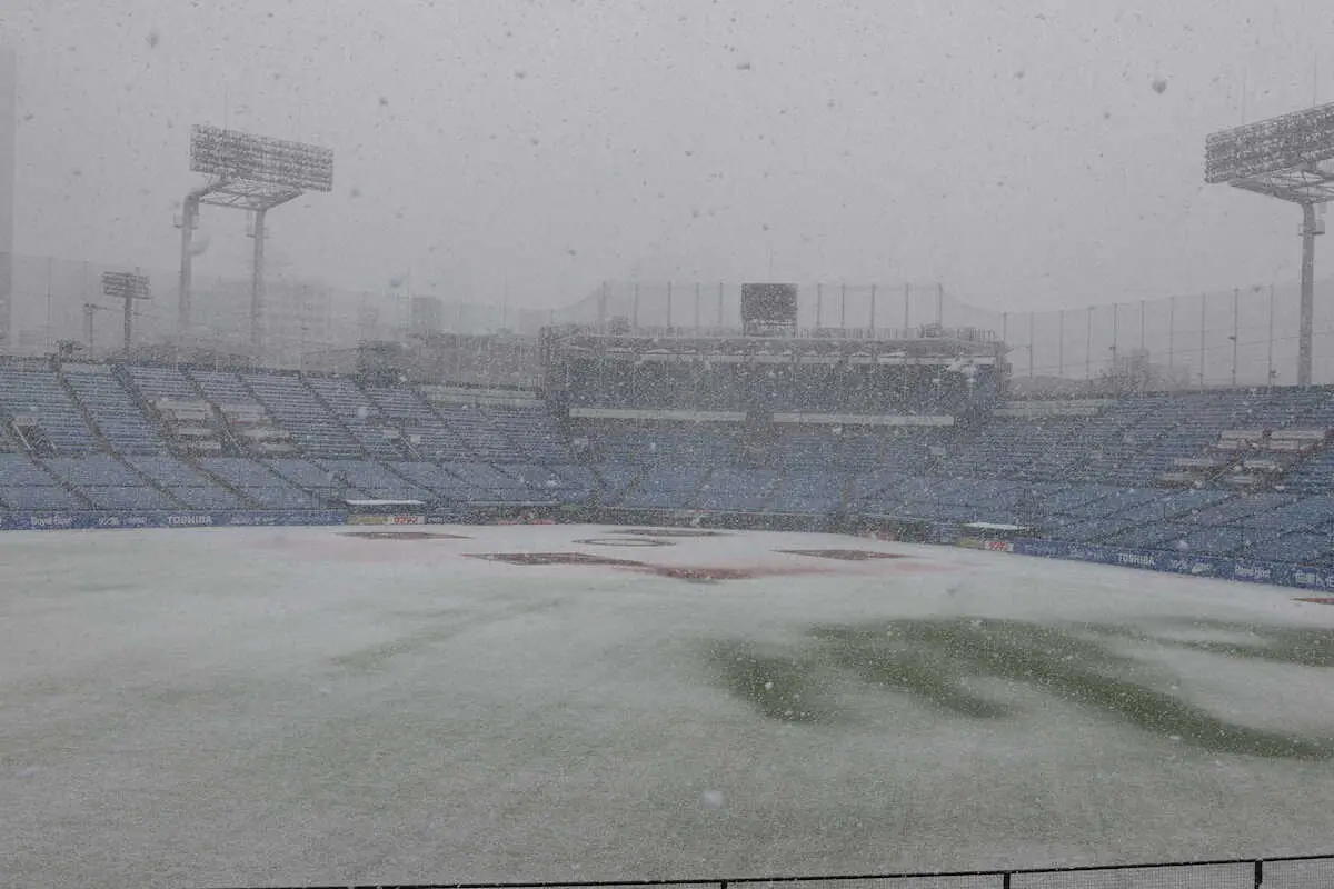神宮球場に大粒の雪 19日のヤクルト-阪神戦前に… 午前10時10分に中止発表