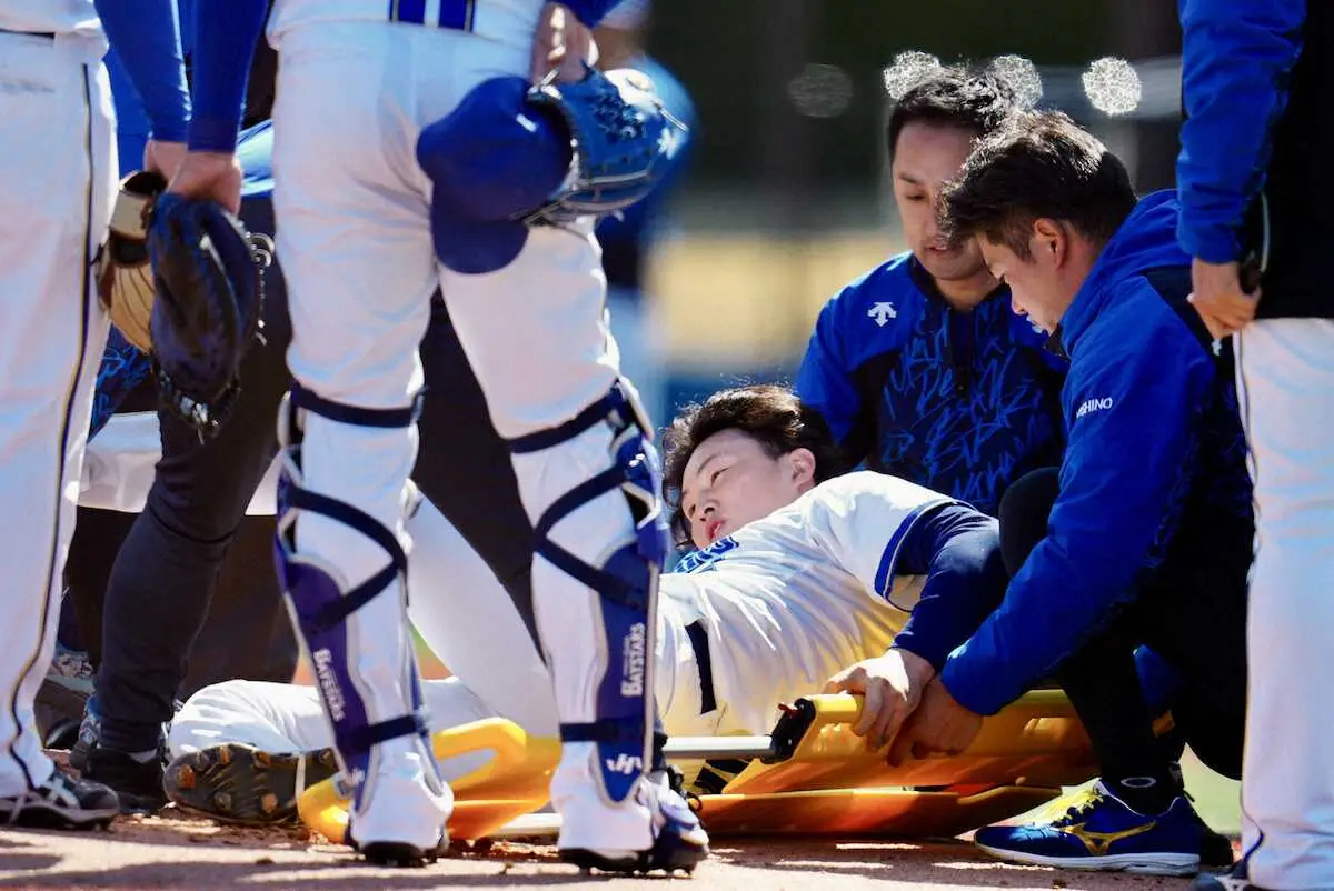 先発して迎えた2回無死一塁の場面で、巨人・山瀬の強烈なライナーが左足を直撃。竹田はマウンドに倒れ込んで動けず、担架に乗せられて退場した。