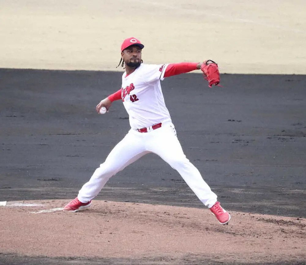 広島の新外国人・ドミンゲス(ホワイトソックス)がウエスタン・くふうハヤテ戦に先発し、今春最長6回を4安打無失点、9奪三振と好投した。開幕先発ローテーション入りが有力視されており、来日後初の打席にも立って準備を整えた。
