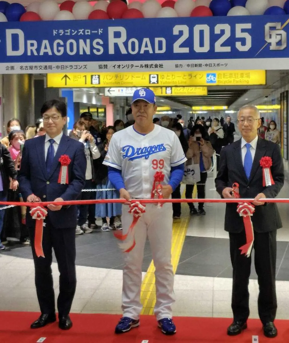 「ドラゴンズロード2025」お披露目セレモニーに出席した中日・井上監督(中)