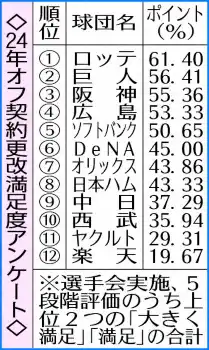 ロッテ 契約更改交渉満足度12球団トップ 楽天が3年連続最下位