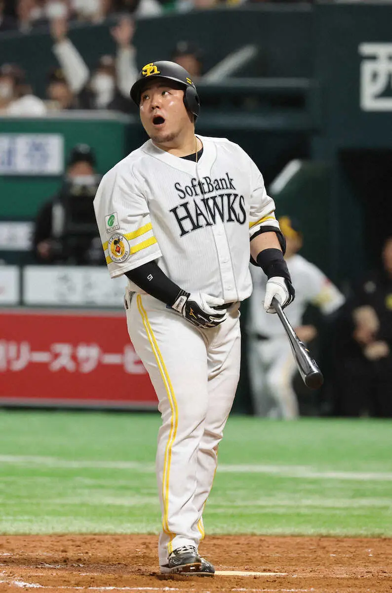 5回2死二塁の場面。2ボールから左腕・高橋が投じた内角カットボールに対して、くるりと体を回転させて打球を左翼ポール際のスタンド中段にまで運んだ。打った瞬間、確信の一振り。オープン戦32打席目で、今季初となる「どすこいコール」をみずほペイペイドームに響かせた。