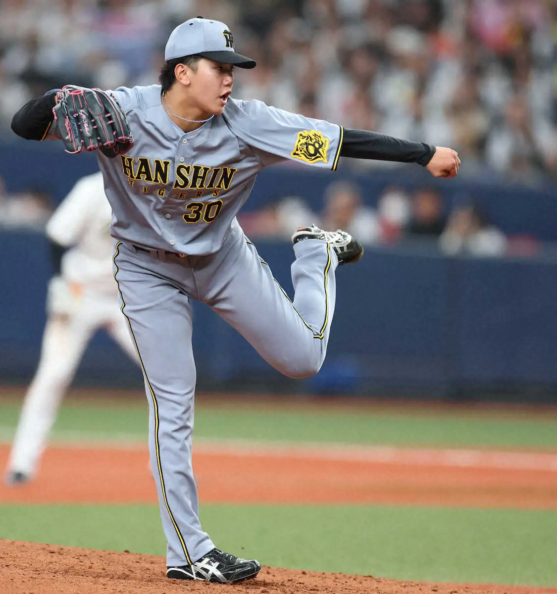 マウンド上での堂々とした姿とは異なり、打席では初々しさも見せた。2回2死一、二塁で迎えた第1打席。カウントが1―1から空振りすると三振と勘違いしてベンチに帰りかけた。カウントを確認後に再び打席に戻るも結果は空振り三振。赤面するシーンもあったが、投手としては役割を果たした。当然、藤川監督も称えた。