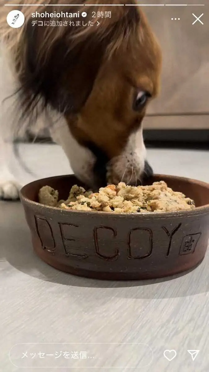 3つの茶わんには側面に「翔平」「17」、さらに一部「美」のような文字が刻まれているもので真美子夫人へも贈ったとみられる。また別の画像では「DECOY」の文字が入った器で食事する愛犬デコピンの写真や動画も紹介。山本も大谷の投稿を引用し、1月の製作時の様子とともに「このとき作ったお皿が」とつづった。