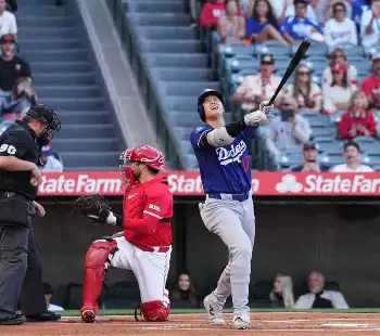 また、この日はドジャースのディノ・イーベル三塁コーチがイヤホンとマイクを付け、試合を中継する「スポーツネット・LA」のインタビューを受けながらコーチャーズボックスへ。大谷の5球目がファウルとなり、三塁線方向へ飛ぶとイーベルコーチは慌てて打球をよけ、大谷も思わず笑みをこぼしていた。
