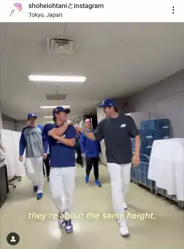 14日に都内で行われた公式会見には山本由伸、佐々木朗希とともに出席。その会見後と思われる通路で3人で笑って歩く様子が公開された。身長1メートル93の大谷が1メートル78の山本に「(会見で3人が並んで)座ってたら同じくらいで、立ったら(山本が)めっちゃ小っちゃいみたいな」と身長が低い山本をイジると、山本が「絶対に立たん」と返し、3人で爆笑する場面があった。