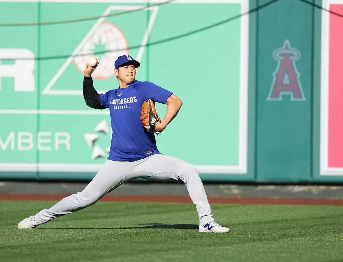 エンゼルス時代のように中堅左横フェンスの「A」のマークに「壁当て」を始めた。試合前に大谷が「公の場」では日本での開幕シリーズ2戦目の19日以来のキャッチボールを再開した。相手を座らせて12球。スプリットなど変化球も交え、力強い球を投げ続けた。