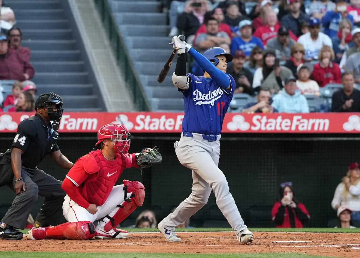 ドジャースの大谷翔平投手(30)は25日(日本時間26日)、エンゼルスとのオープン戦最終戦に「1番・DH」で先発出場。第2打席で右中間フェンス直撃の二塁打を放った。日本開幕戦から米国に帰国後はオープン戦3試合目で初安打となった。大谷は6回の打席で代打を送られ、2打席を終えて途中交代した。今春オープン戦は10試合に出場して23打数7安打の打率.304、1本塁打、2打点、0盗塁で終えた。