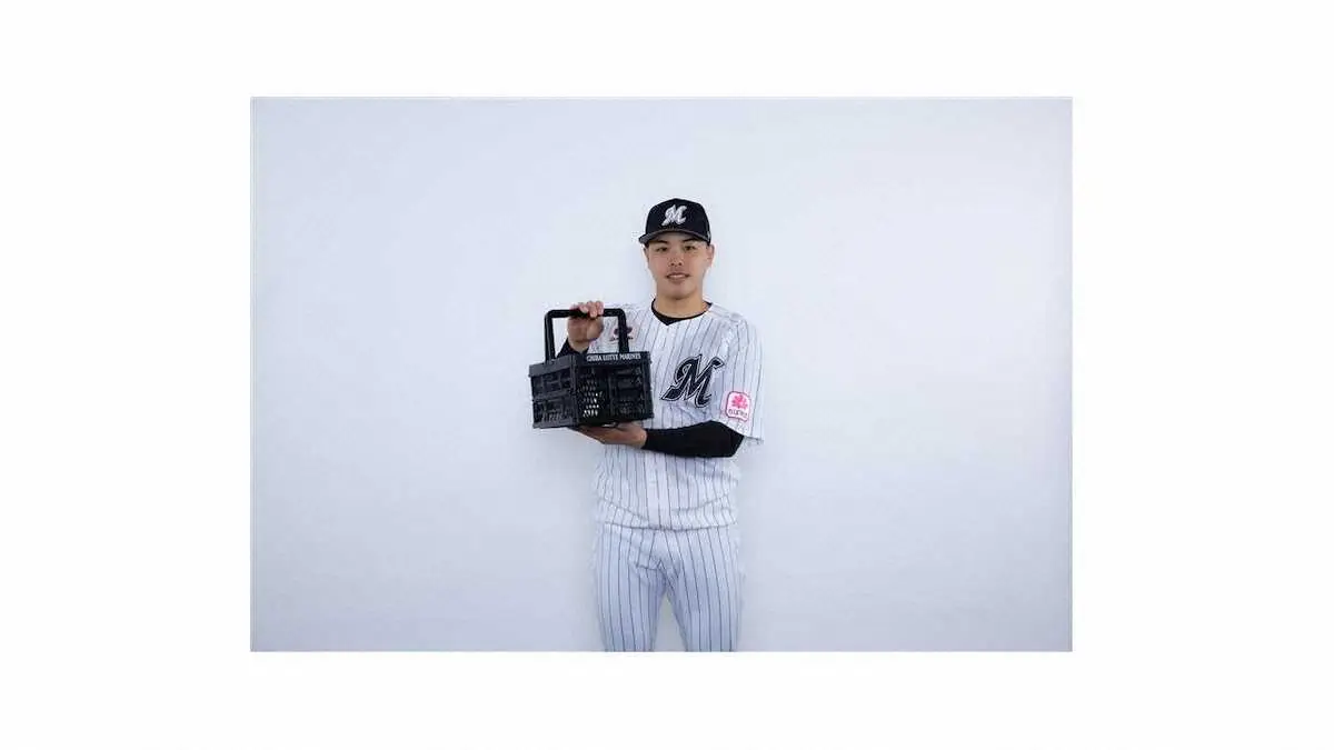 「ミニコンテナ」を手に持つロッテ・小川龍成内野手(球団提供)