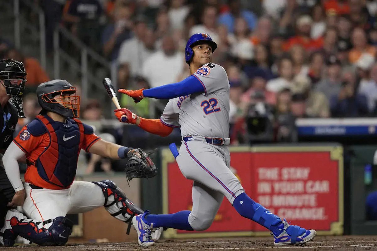 メッツのフアン・ソト外野手(26)が28日(日本時間29日)、敵地でのアストロズ戦に「2番・右翼」で先発出場。3回に移籍後初本塁打を放った。