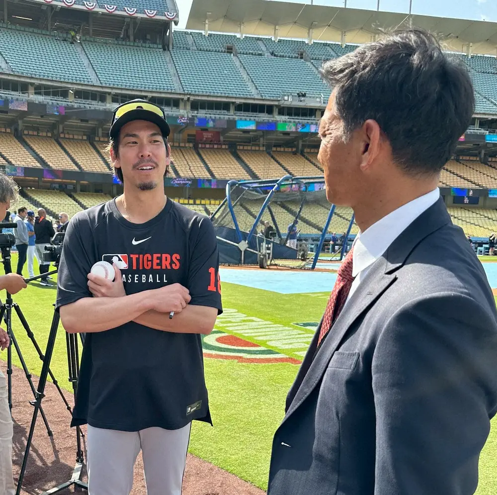 <ドジャース・タイガース>キャッチボール中にタイガース・前田(右)と話すドジャース・大谷(撮影・沢田 明徳) Photo by スポニチ 前田健太 大谷翔平との対戦熱望「対戦できたらいい」古巣本拠での登板に… ギャラリーで見る この記事のフォト 2025年03月30日の画像一覧 もっと見る 2025年03月30日の画像をもっと見る