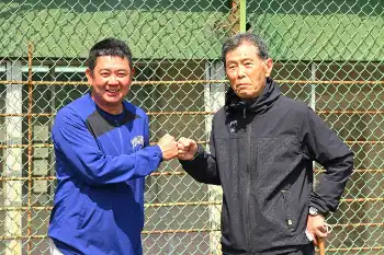 横浜元監督の渡辺元智氏が激励に訪れた。練習後に言葉を贈り全員とグータッチ。「験を担いでね。俺の名前は“ゲン”だから。勝ちたい勝ちたいとなると墓穴を掘るから、気合、気迫だけは相手に負けるなと。安心してやんなさいと」と明かした。教え子である村田監督には「短期間で村田野球ができつつある。試合の中での彼の変化を明日見てみたい」と期待した。