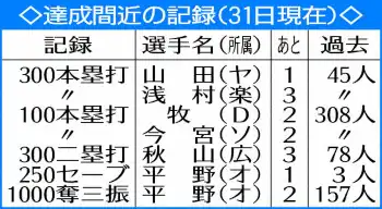 プロ野球の達成間近の記録を取り上げる「WeeKly Data展望」を今季も毎週火曜日に掲載。第1回は巨人・田中将大投手(36)の記録に注目した。(記録課・志賀 喜幸)