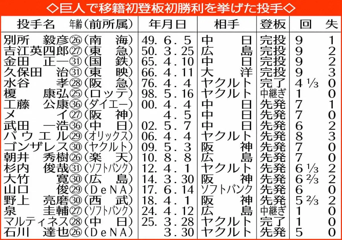 田中将(巨)の今季実戦成績 Photo by スポニチ 巨人 同一年3人が移籍初登板初勝利なら球団初!田中将 マルティネス、石… ギャラリーで見る この記事のフォト 2025年04月01日の画像一覧 もっと見る 2025年04月01日の画像をもっと見る
