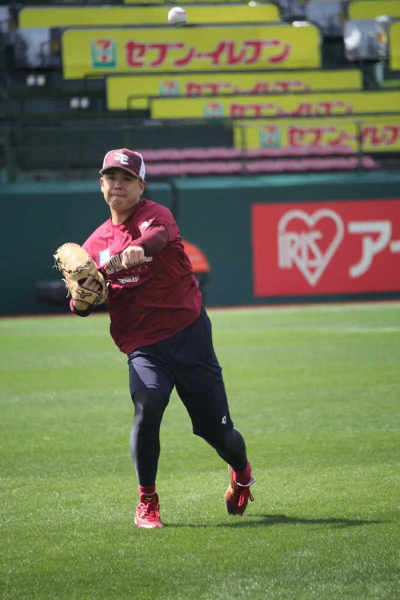 楽天モバイルパークでキャッチボールを行う楽天藤井(撮影・花里 雄太)