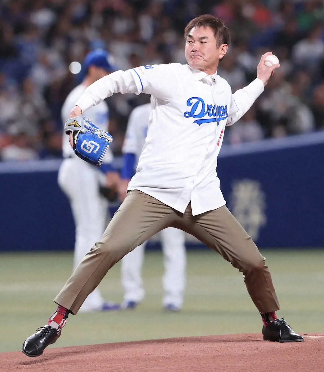 中日―巨人戦で岩瀬仁紀氏が始球式「ズボンが破れないか心配でした」
