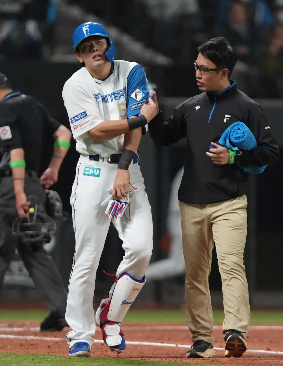 日本ハム・野村佑希 左肩付近に死球受け場内騒然…前の打席で3号ソロ